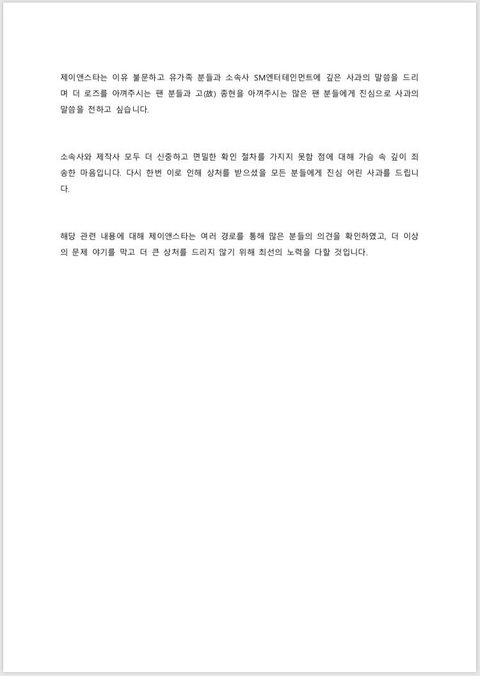 여러분들께서도 아시다시피 내 가수의 방패는 팬이기 때문에, 저 역시 멤버들이 잘못했다면 질타받고 욕먹는게 당연하다고 생각해 쉴드 칠 생각은 없지만 그래도 뮤직비디오 촬영 당시 아무것고 모르고 있던 멤버들이 이번 사건으로 상처를 받을까봐 또 내심 가슴아픕니다.. (가수를 좋아하신다면 이 마음을 이해 하실거라 믿습니다..)