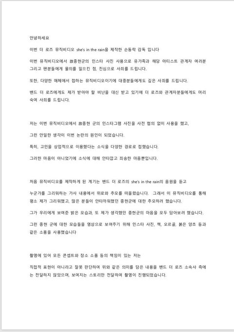안녕하세요. 저는 더로즈 팬입니다. 저도 종현님 너무 좋아했고 사건 터지고 나서 펑펑 울었습니다... 이번 사건, 정말 더로즈를 좋아하는 한 사람으로써 사과 드립니다.