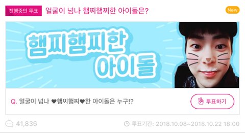 10월 22일 6시까지 매일 3표씩 투표 부탁드려요!!! 슈햄찌님이 직접손으로 투표가 5일남았다고 알려주시네여! 정말 쉽고 간단한 투표니만큼 슈람쥐파 슈냥이파 엘사님들의 도움이 절실합니다ㅠㅠㅠ
