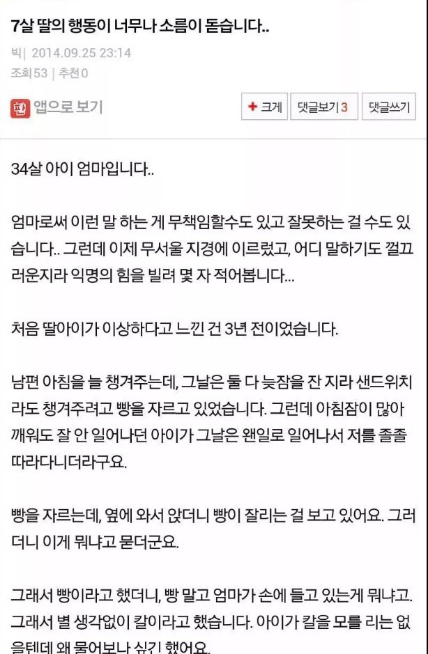 7살 딸의 행동이 너무나 소름돋습니다 (후기포함).txt