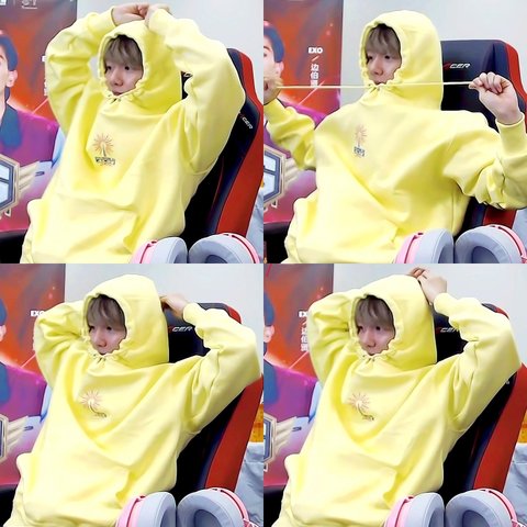 오늘 배그방송에서 노란후드 입고 나온 백현ㅠㅠ