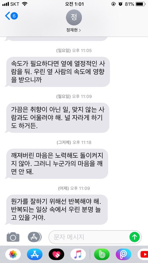 일요일부터 어제 멘트까지 항상 힘된다