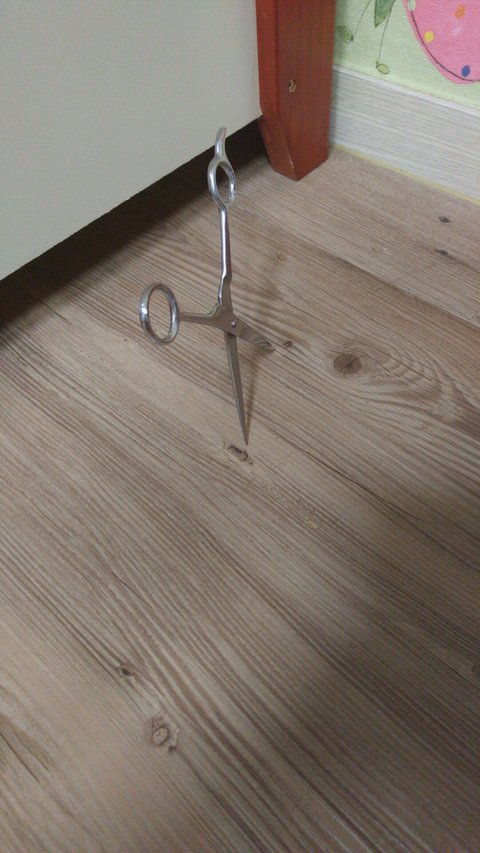 그러다 화장대를 실수로 쳐서 화장대 위에 있던 미용가위가 바닥에 떨어졌는데ㅋㅋㅋㅋㅋ