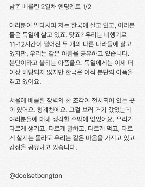(베를린 2일차) 남준짹+엔딩멘트 번역
