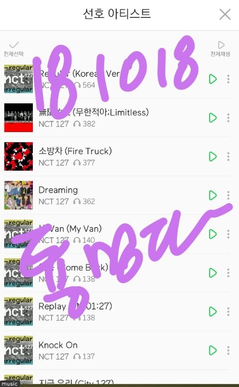 음원발매일부터 스밍한 레귤러 포함 수록곡 누적횟수