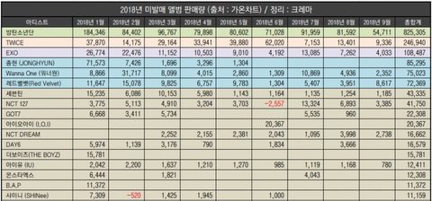 2018년 미발매 앨범 판매량