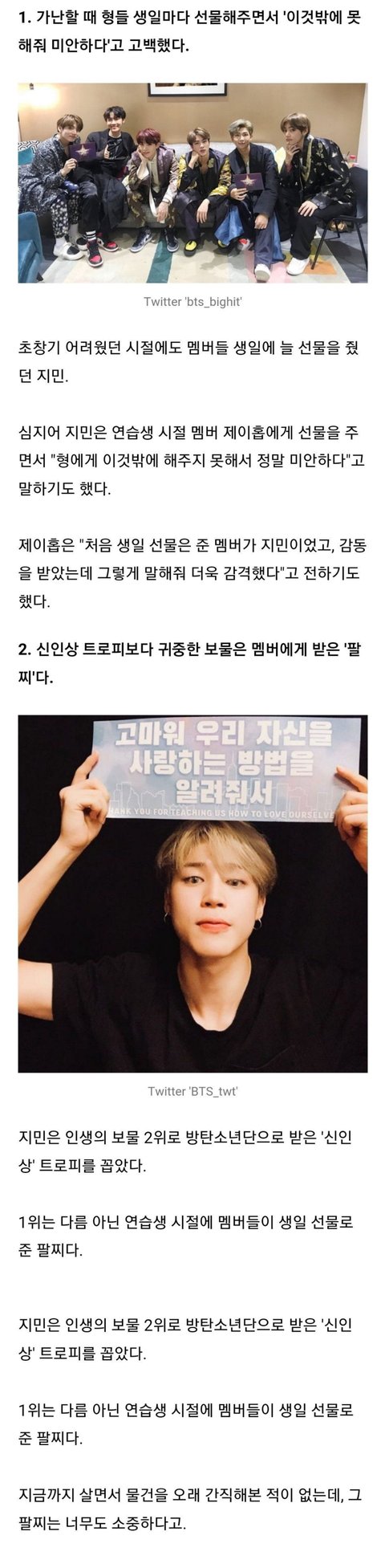 지민이가 했던말 “이것밖에 못줘서 미안해요”