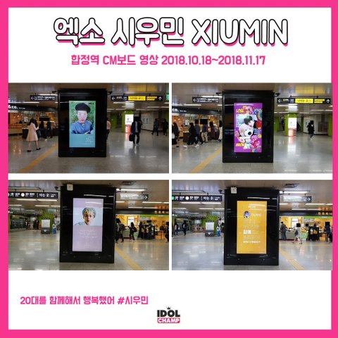엘사님들 합정역에 걸린 예쁜 시우민광고 보러가세여! 그리고 22일까지 하는 햄찌햄찌 아이돌 투표도 부탁드립니다ㅠㅠㅠ