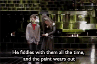 그는 언제나 지팡이를 만지작거리고 있기 때문에