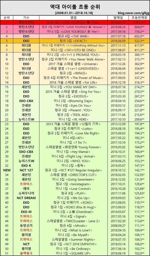 엔시티 첫정규 초동 엑소 유닛보다 낮음
