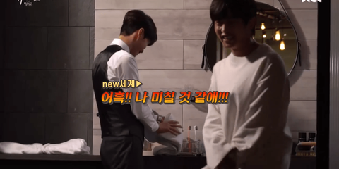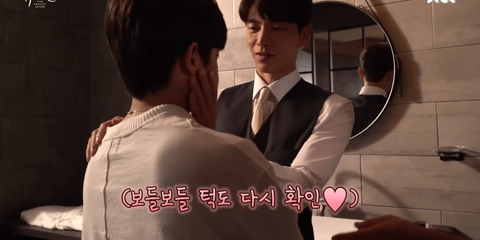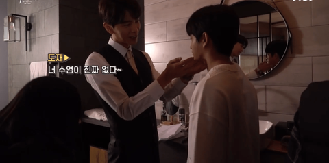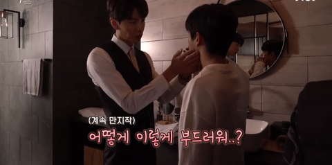 김민석(=한세계 여주)이 면도를 잘 못하니까 이민기(=서도재 남주)가 도와주는 씬임 (여주는 영화 뷰티인사이드처럼 얼굴(사람)이 계속 바뀌는 설정)