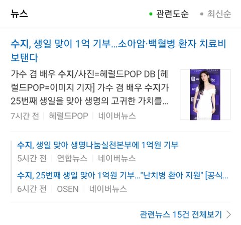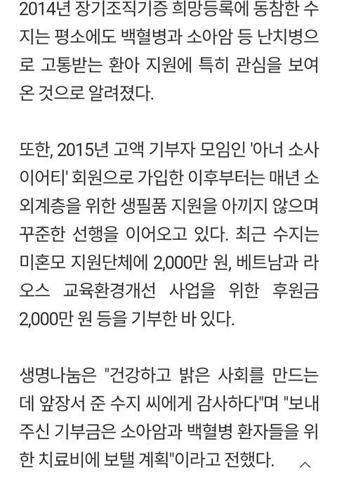 누구같이 몃천 기부해놓고 네이버도배하는 애들보단 수지가 진국인듯