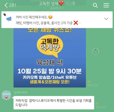 하지만 셀카에도 불구하고 아무도 안믿는 분위기이자 공지 올릴테니 제발 강퇴하지말라고 부탁ㅋㅋㅋㅋㅋ