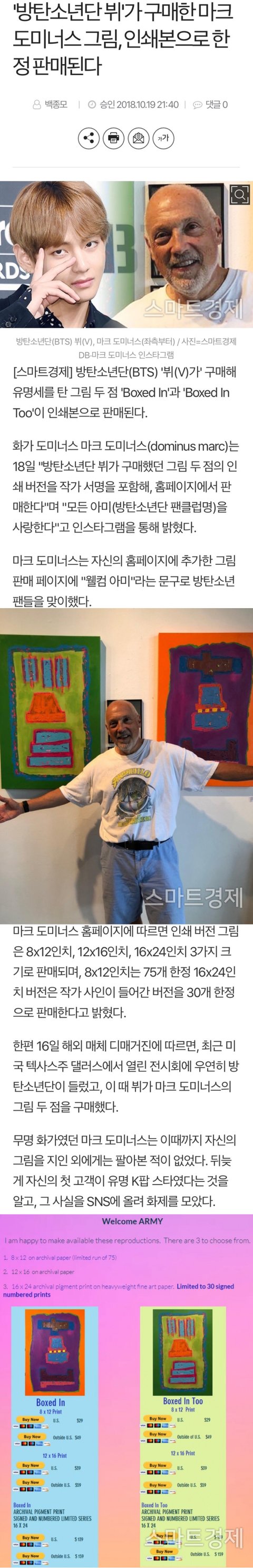 내생각엔 아미들이 마구 요청한듯함ㅜ 그럼 안팔수가 없을것 같기도 하고; 그래도 희소성있는 작품으로 남겨 두는게 저 작가분에게도 태태에게도 더 좋을것 같긴한디