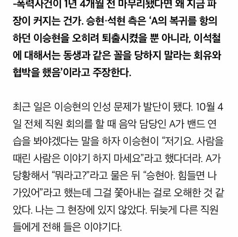 근데 나는 “폭력이 있었고 소속사가 인지를 했다”는 이 논쟁의 여지 없는 부분을 문제삼는거임