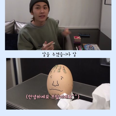 다음으로 정일훈이 프니한테 계란에 프니엘 얼굴 그려서 줌ㅋㅋㅋㅋㅋㅋㅋㅋㅋㅋ