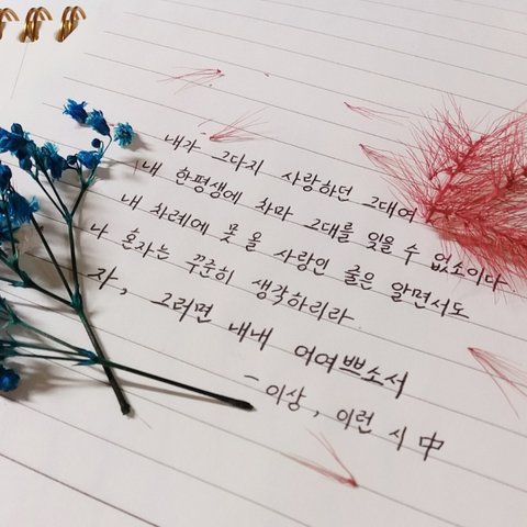 -아무 노력 말아요 버거울 땐 나의 이름을 잊어요/ 꽃잎이 번지면 그럼에도 새로운 봄이 오겠죠 한참이 걸려도 그대 반드시 행복해지세요 끝눈이 와요 혹시 그대 보고 있나요 슬퍼지도록 시리던 우리의 그 계절이 가요