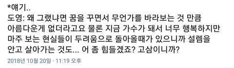 나 아까 내용 물어본 준흰데 내가 고3이라 너무 공감된다....ㅠㅠㅠㅠ 안그래도 독서실에서 공부하다가 잠깐 쉬는데 눈물날것같아ㅠㅠㅠㅠ 고마워 준희야ㅠㅠ