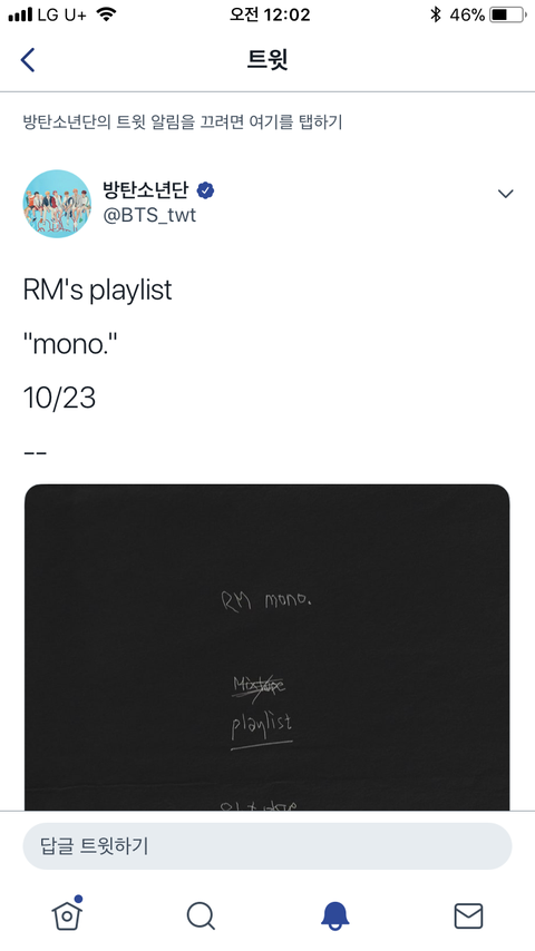 이거 뭐지?? 모노?? 믹스테잎인가...? 혹시 내가 뭐 모르는거야? +)) 헐ㄹ 믹스테잎인가봐ㅠㅠㅠㅠㅠ 남준아ㅜㅠㅠㅠㅠㅠㅠ 10/23 공개인듯 ㅠㅠ
