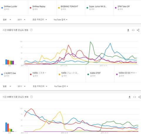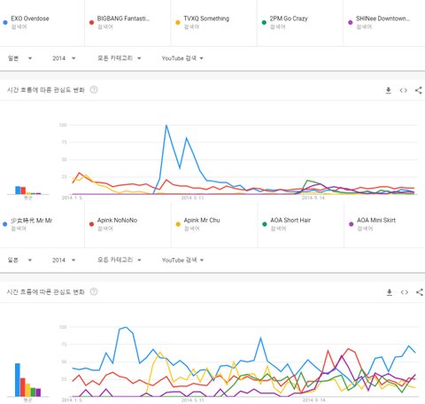 여자가수 : 1위 소녀시대 미스터 미스터, 2위 에이핑크 노노노, 3위 에이핑크 미스터 츄, 4위 AOA 단발머리, 5위 AOA 짧은 치마