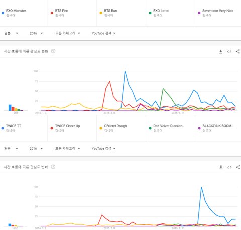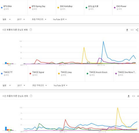 여자가수 : 1위 트와이스 TT, 2위 트와이스 치얼업, 3위 여자친구 시간을 달려서, 4위 레드벨벳 러시안 룰렛, 5위 블랙핑크 붐바야