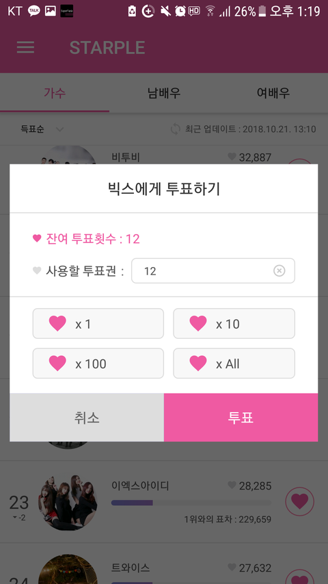 광고까지 안봐도 앱만깔면 하루에 2개씩은 주고! 광고 그냥 옷입으면서 로션바르면서 전부 다 보고 12개 퉆하면 더욱 조코~~!! 고생한 빅스를 위해서!