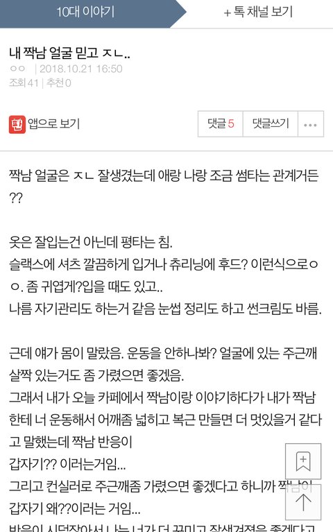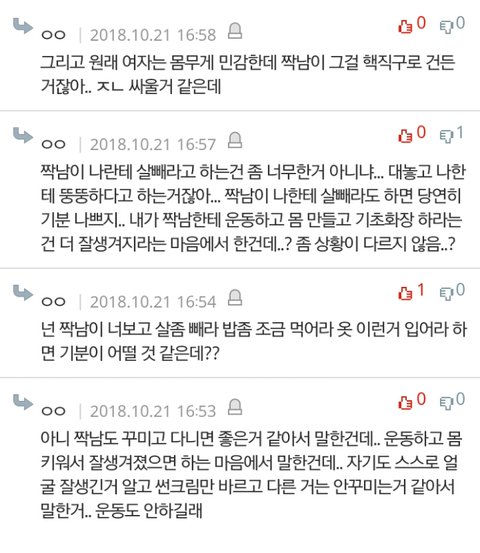 나는 짝남이 운동해서 더 잘났으면 좋겠어서 말한건데.. 댓글 보니까 내가 잘못한거 같다고 느낌.. 다음부터 조심해야겠다.