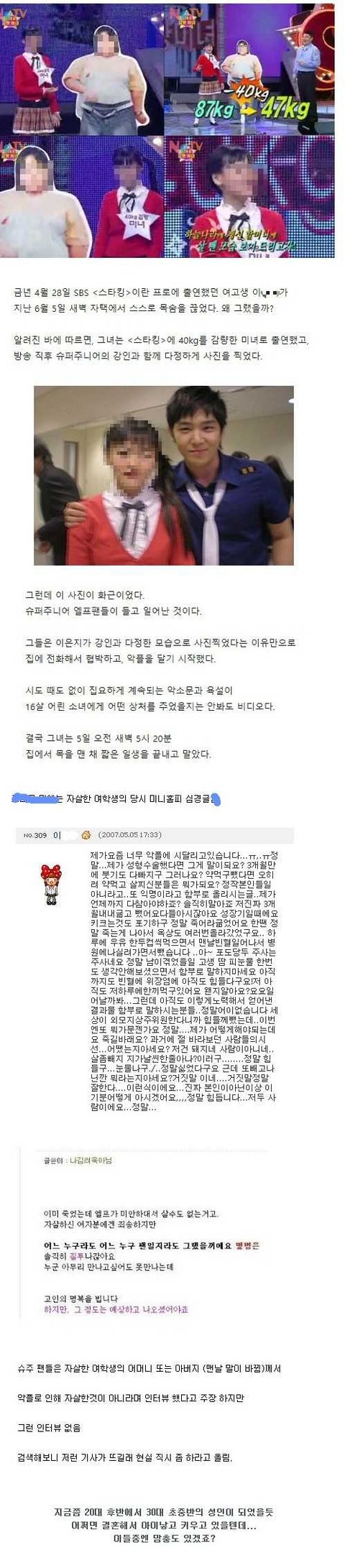 2007년 악플로 여고생을 자살하게 만든 슈퍼주니어 엘프들