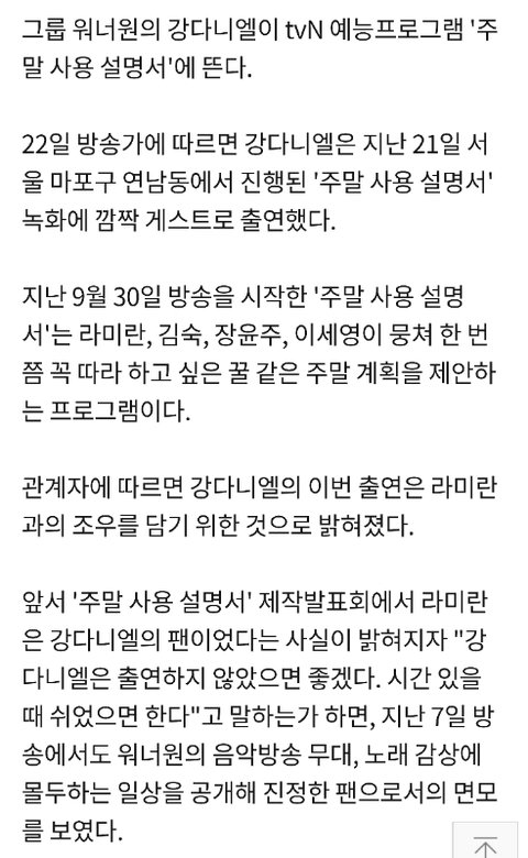 기사) 강다니엘, 라 미 란 만났다..'주말 사용 설명서' 촬영