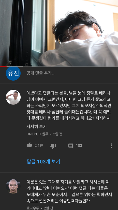 근데 난 이분 죽을둥 살둥 까는애들도 이해가 안감.. 걍 여론에 휩쓸려서 지혼자 ㅂㄷㅂㄷ하는 초딩인지 뭔지는 모르겠지만..이분 생각이 본인이 생각할때 좀 아니면 충고댓 하나 남기고 안보던가 하면 되는걸 메갈이다 어쩌구 저쩌구 몸매지적에..