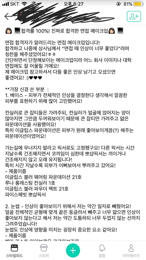이렇게 화장하고 가면 백퍼센트 면접 합격이라고...? 면접 결과는 얼굴 보고 나오는 게 아닌데 ㅎㅎ,, 여따가 올린 건 거기에 댓글 달면 백퍼 스쉐러들이 나 언급하면서 ㅈ논리로 반박해댈 것 같아서 ㅋㅋ 이상한 쪽으로 쉴드 오질나게 침