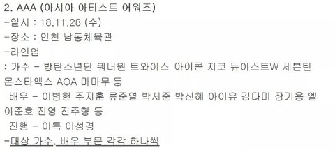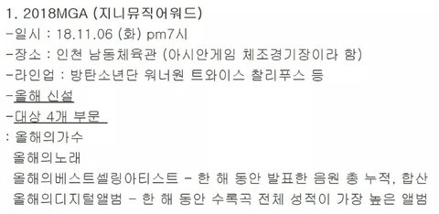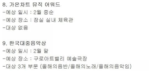 2018 가요 시상식 일정 정리