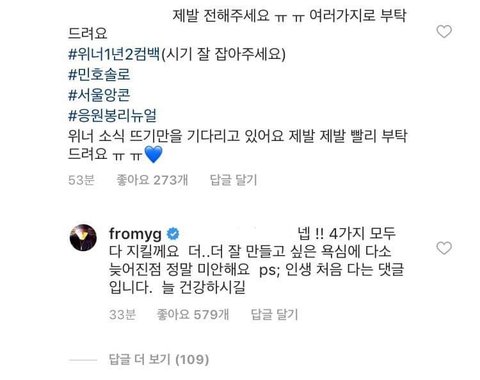 방금자 양현석 인스타그램 업데이트