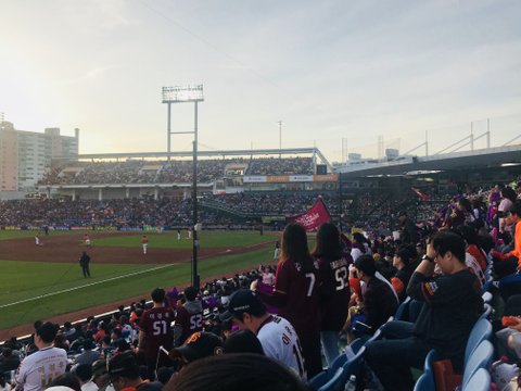 일단 표 구하기가 너무 힘들었어서 자리는 3루쪽이었는데 대전구장은 워낙 작고 오랜만에 가을 야구를 하는지라 외야까지 거의 홈팬들이 다 점령하다시피 해서 원정팬들은 많이 찾아볼 수 없었습니다.