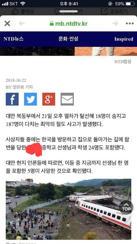 근데 대만에서 열차가 탈선해서 사람들 다치고 사망했다는 기사가 떴단말이야