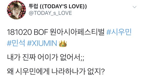 홈마의 저격을 받은 시우민 요정왕자님은 큰 충격을 받았어요