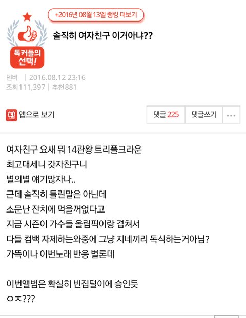 여친은 물론 타팬덤도 까긴했지만 여친깐게 엄청 많다.