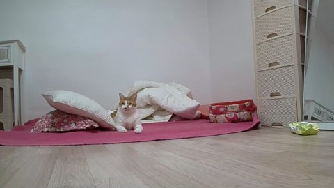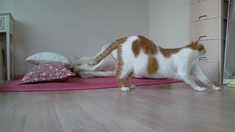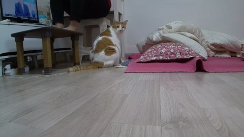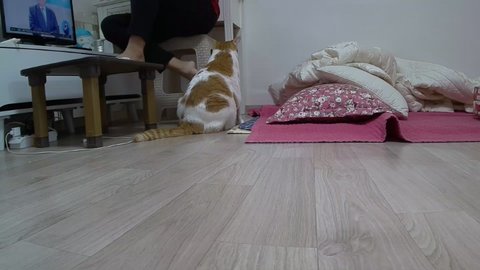 집사 발이 도칠이 건들고 있음.