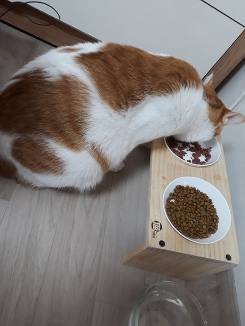 집사 출근 전에 도칠이 아침 먹이고 있음.