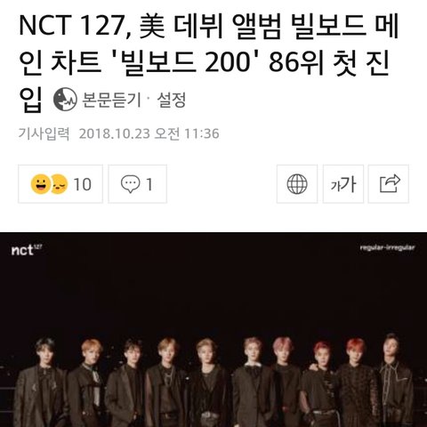엔시티 빌보드메인차트86위!!