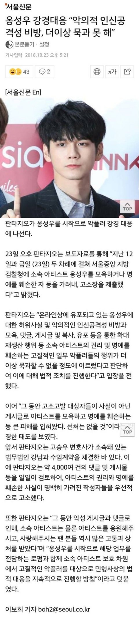 옹성우한테 악플썼던 애들 큰일났네ㅜㅜ