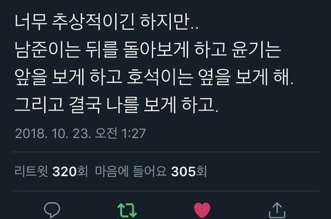 내가 느낄땐 슈가는 뼈속깊이와닿고 제이홉의 음악은 분위기에 스며들고 알엠 음악은 가슴에 새겨지는것같아