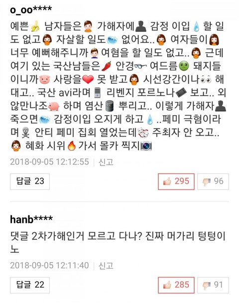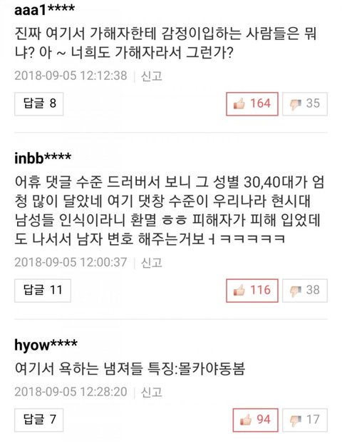 2차가해 악플 가장 많이 쓴건 30대 늙은 한국남자