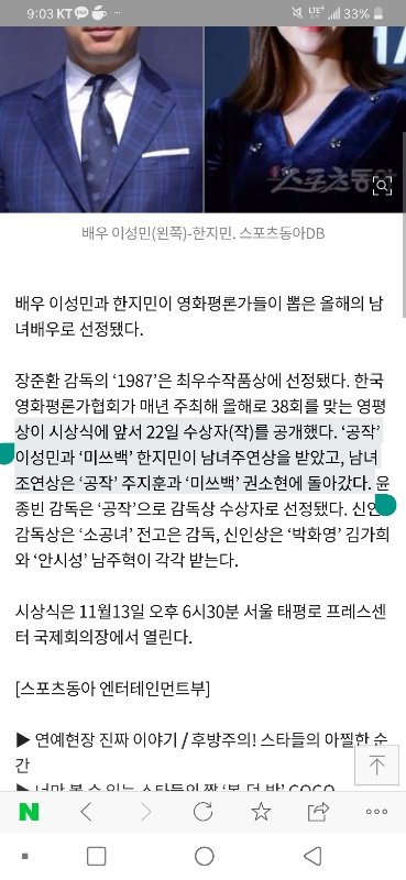 다음달 영평상 주연상, 조연상에 한지민. 권소현 배우가 상 받게 됐어.