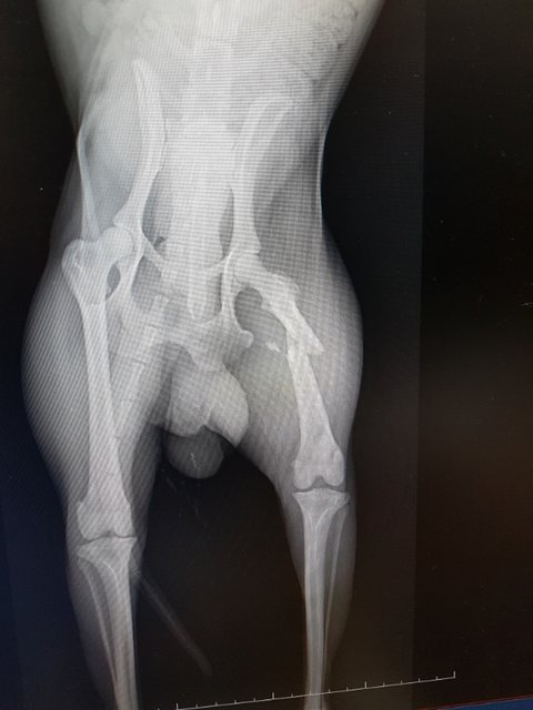 엑스레이 결과 대퇴부가 골절되었습니다.