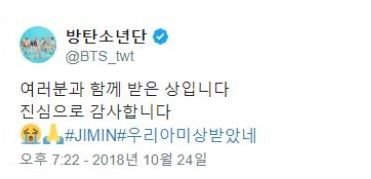 아미들아 우리도 #우리방탄인기상받았네# 한번 써보고 싶지 않냐
