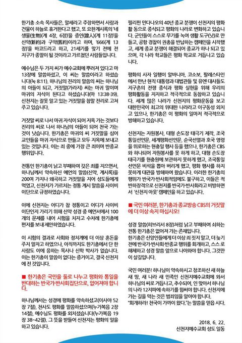 ■ 국민 여러분, 한기총과 종교방송 CBS의 거짓말에 더 이상 속지 마십시오!