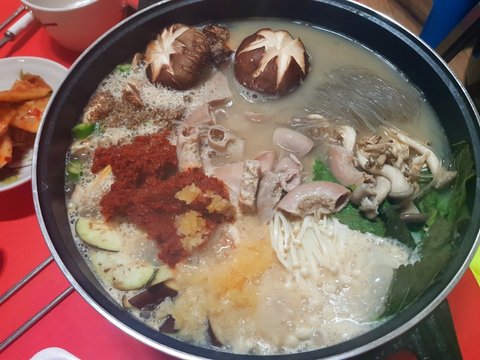 집근처 시장에서 소곱창을 싸게팔길래 사다가 직접만들어봤어요. 화학조미료대신 건표고버섯갈아서 넣고 비비고 사골곰탕을 육수로 썻더니 나름 깊은맛도 났던것같아요