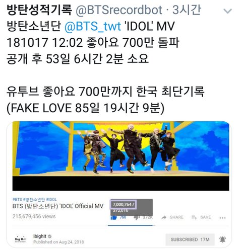 ++ 아이도루 좋아요 최단 700만 돌파