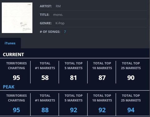 + 현재까지 미국 포함 50개국 이상 아이튠즈 1위 중